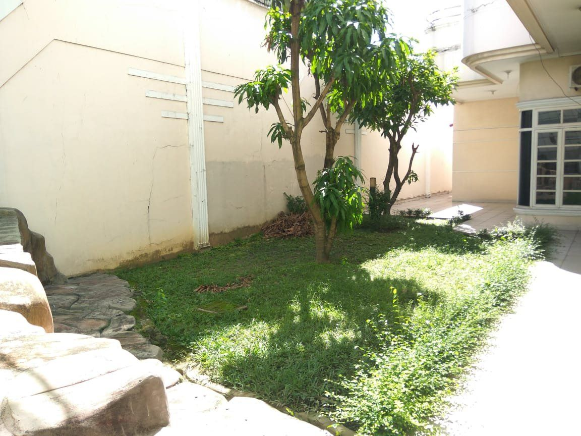 Hak milik, Total 840 mtr, depan 24 mtr, belakang 26 mtr, dalam 33 mtr, lantai II , kira2 800 mtr, 5 kmr tdr,(semua ada kmr Mandi), 1 mester Room, 1 karaoke, 1 kantor, 1 WC umum, 1 kmr Tidur pembantu,(WC) Dapur kotor, Dapur Bersih, Gas Negara, Air Pam , Listrik 16,5 tiga pass, Air Sumur(tanah) bersih, 2 Palabola, kayu tangga mahoni, dan perabot, garasi dalam 6 mobil, dalam pagar 8 mobil.